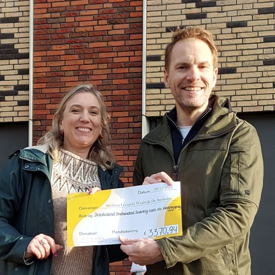 Het was een gezellige drukte op vrijdag 20 december rond het Dr. Mollercollege en sporthal De Zeine. Leerlingen van de brugklas liepen zo veel mogelijk rondes om geld in te zamelen voor een goed doel: dit jaar was dat Leergeld Waalwijk De Strohalm. Met een ‘Santa estafette run’ op sportcomplex De Zeine sloten de leerlingen het jaar sportief af. Voordat ze aan de kerstvakantie begonnen, gingen ze de uitdaging aan om zoveel mogelijk rondes te lopen op een hindernisbaan vol hordes. En met succes! Maar liefst 200 leerlingen liepen 6 rondes en haalden daarmee het prachtige bedrag op van 3.370,94 euro. Namens onze stichting nam Geert van Rooij de cheque in ontvangst van Jolanda Wolters, teamleider brugklas. Hij bedankte de leerlingen voor hun sportieve inzet en het organiseren van deze Santa Run. Leerlingen van het Dr. Mollercollege: complimenten voor deze geweldige actie!